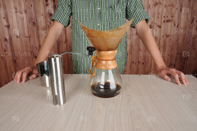 Бариста делает кофе