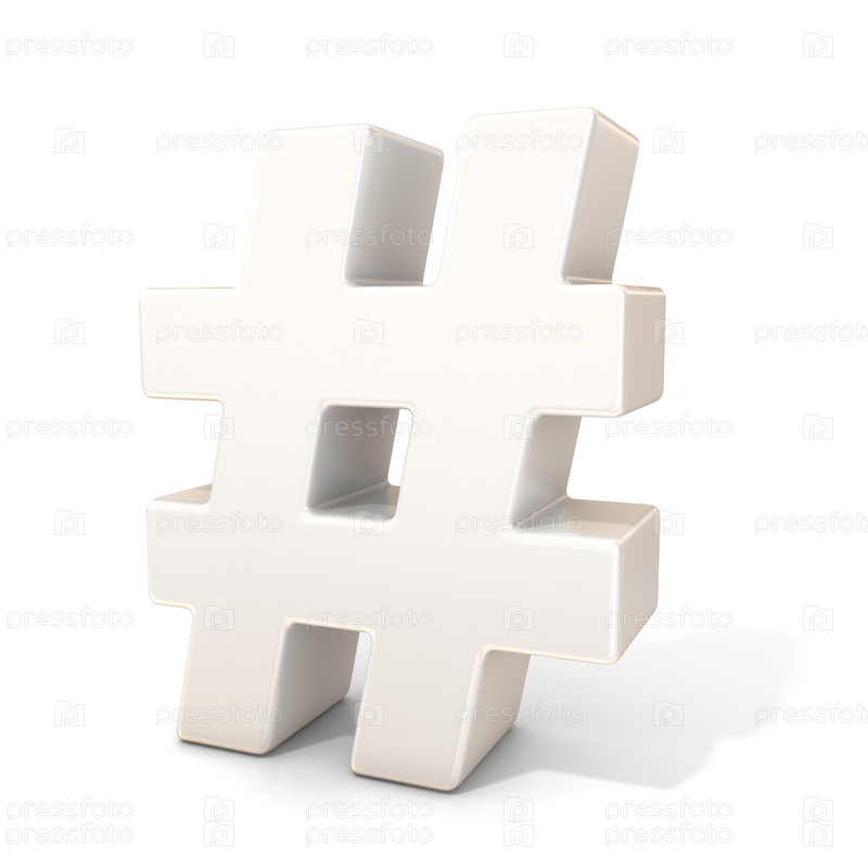 Хештег, 3D белый знак