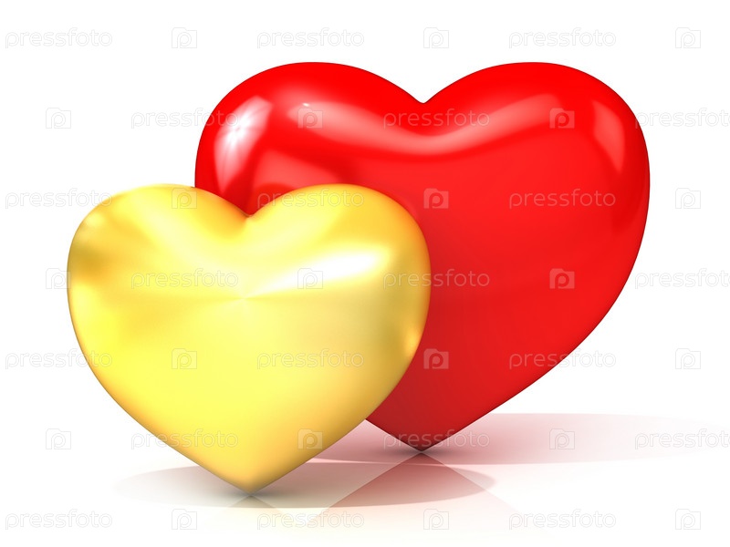 Красное и золотое сердца. 3D