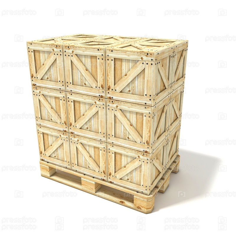 Деревянные ящики на европодонне. 3D