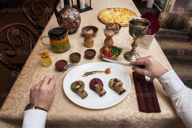 Человек ест в грузинском ресторане
