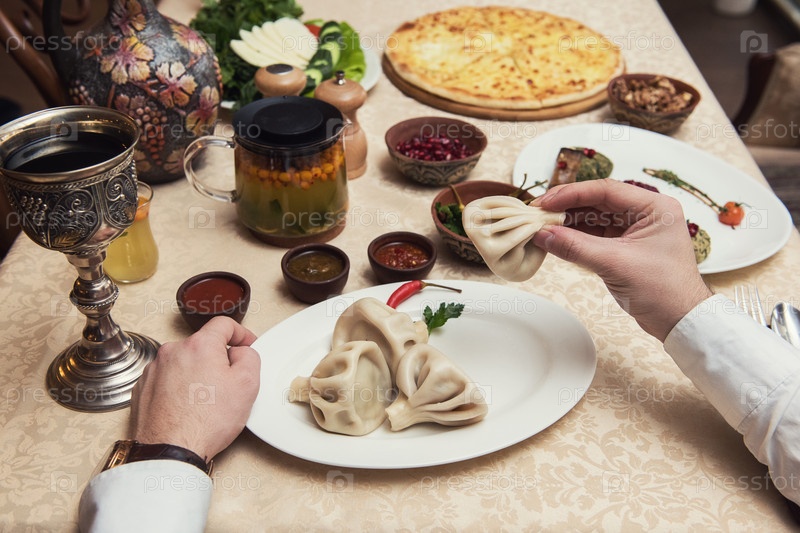 Человек ест в грузинском ресторане