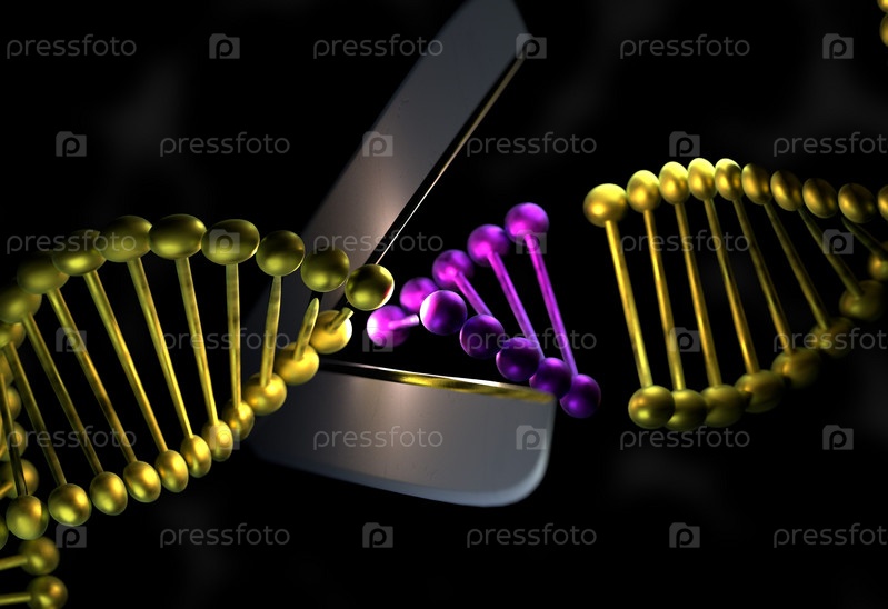 Вырезать дефектный ген из ДНК, 3D иллюстрация
