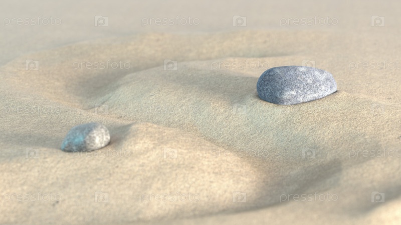 Камни медитации на песке, 3D иллюстрации