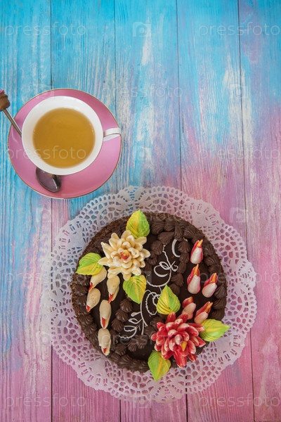 Торт на цветном фоне