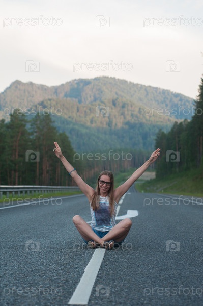 Женщина, сидящая на дороге