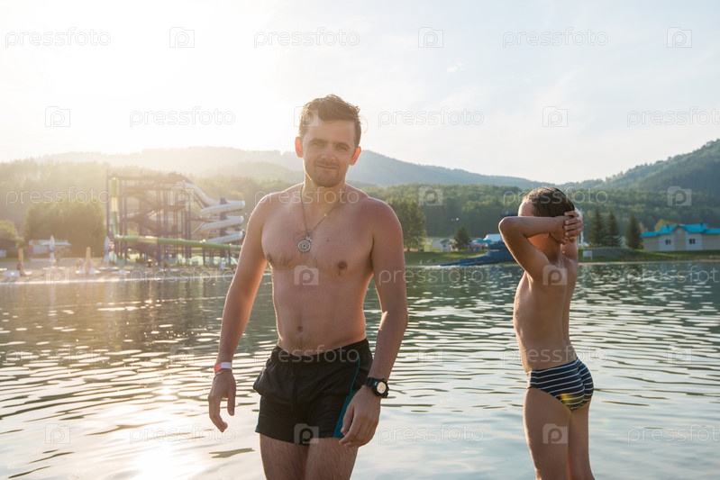 Отец и сын на озере