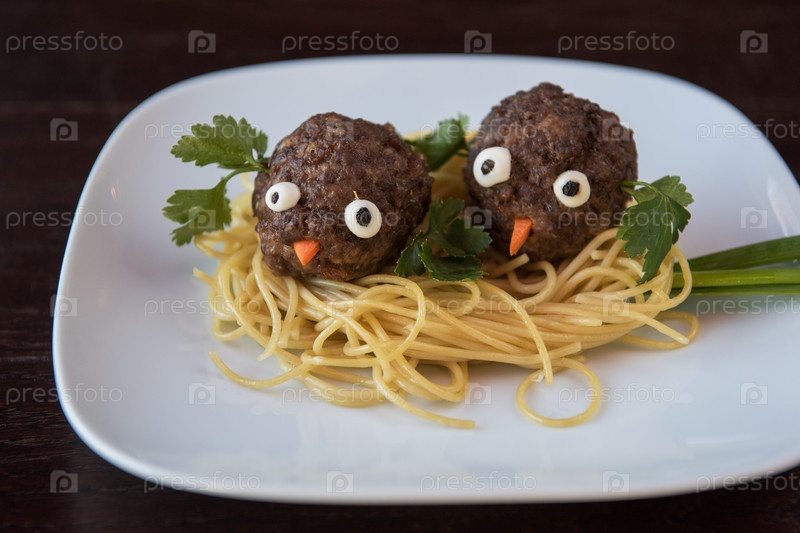 Смешные фрикадельки с макаронами