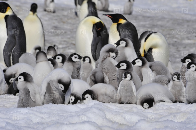 Императорские пингвины с птенцами