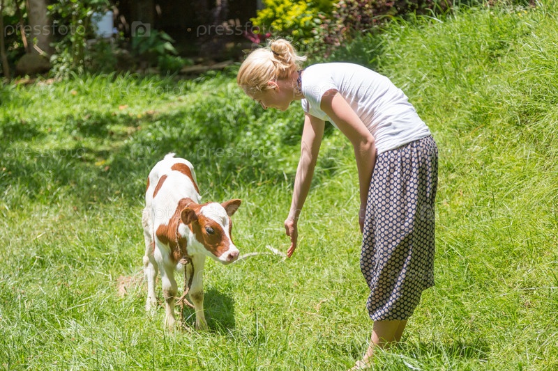 Женщина с теленком