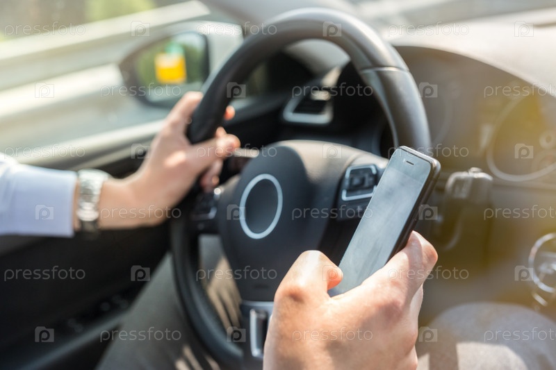 Бизнесмен за рулем с телефоном