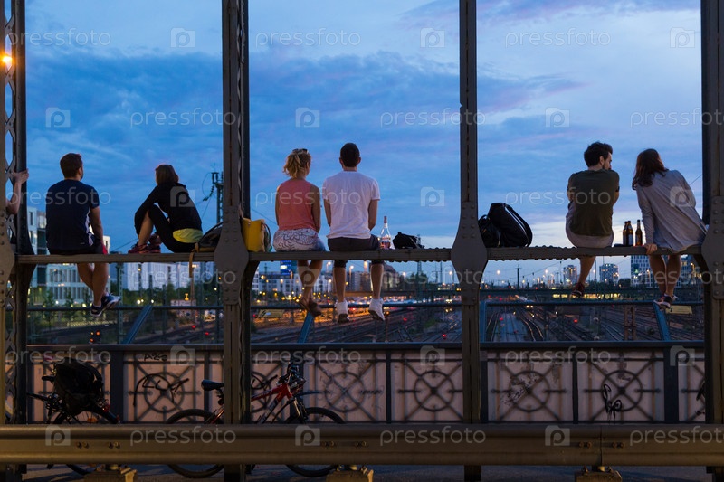 Друзья на городском железнодорожном мосту, Мюнхен, Германия