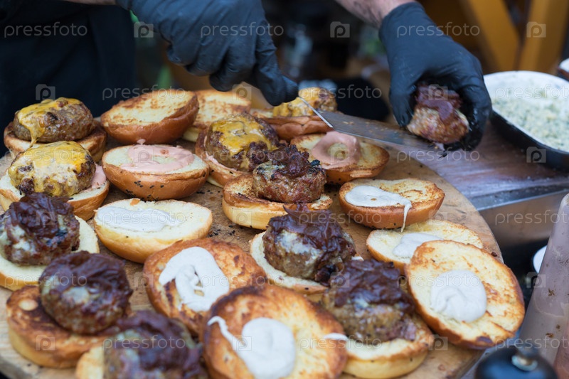 Шеф-повар делает бургеры