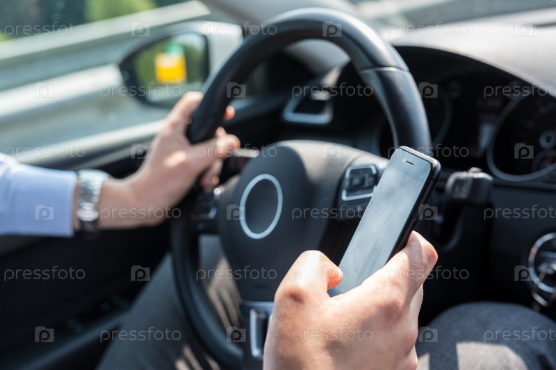 Бизнесмен за рулем читает сообщение