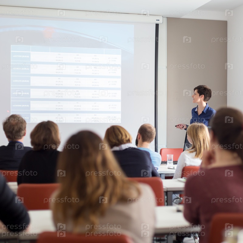 Женщина дает презентацию в лекционном зале в университете
