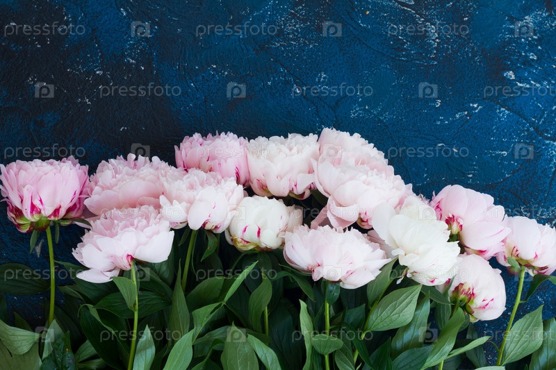 Свежие пионы на синем
