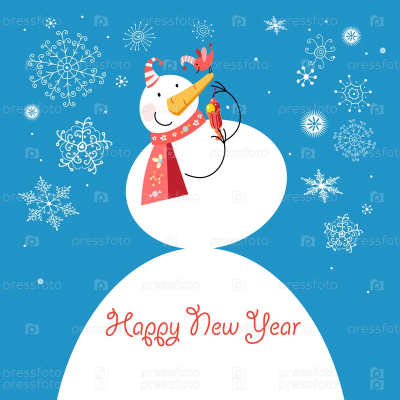 Забавный снеговик с птицей