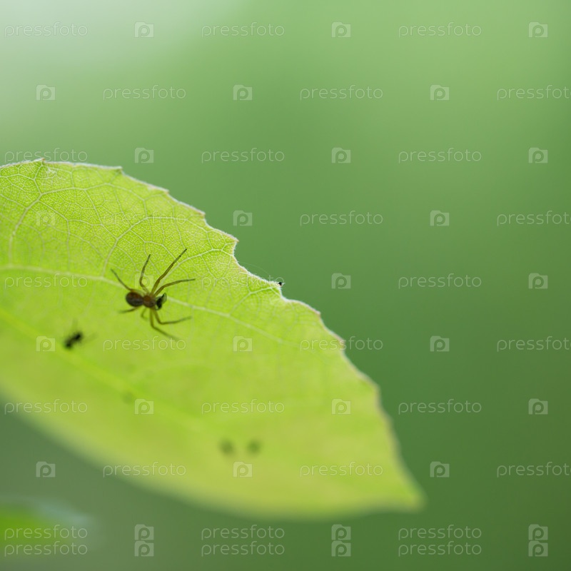 Паук на зеленом листе