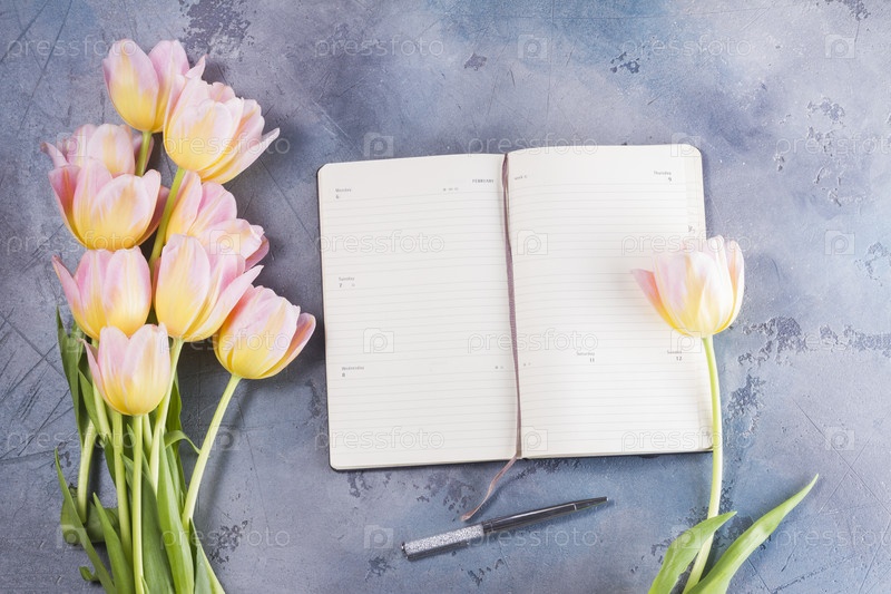 Композиция с розово-желтыми тюльпанами