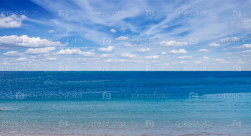 Морской берег с голубым небом