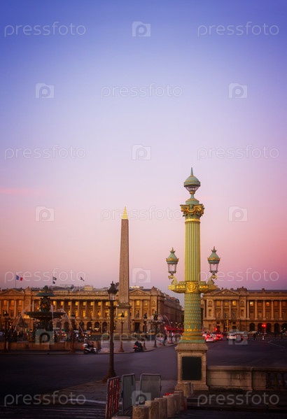 Плац де ла Конкорд на закате, Париж