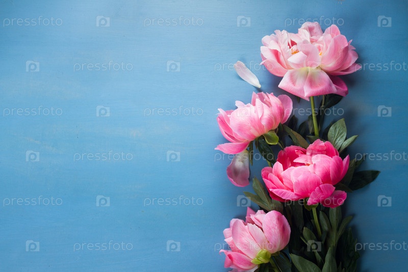 Свежие пионы на синем