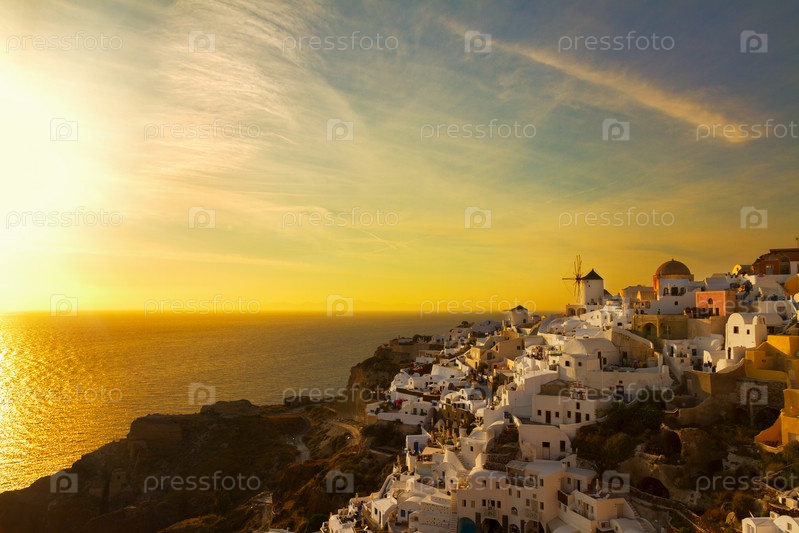 Ветряная мельница и деревня Ия на закате, Санторини