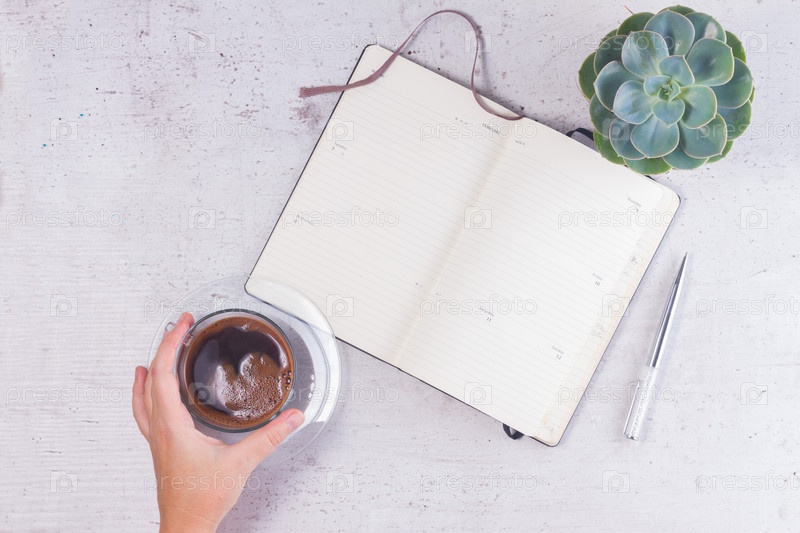 Открытый пустой блокнот на столе