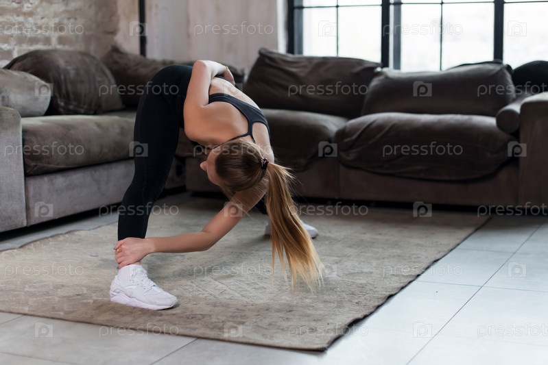 Девушка тренируется дома