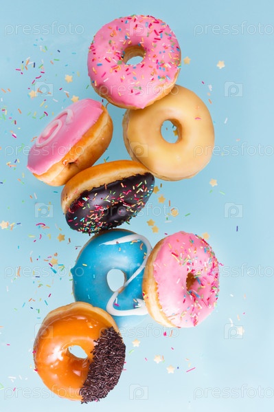 Летающие пончики на синем
