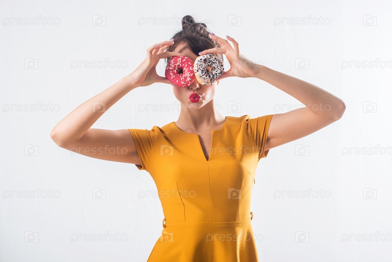 Смешная брюнетка с пончиками
