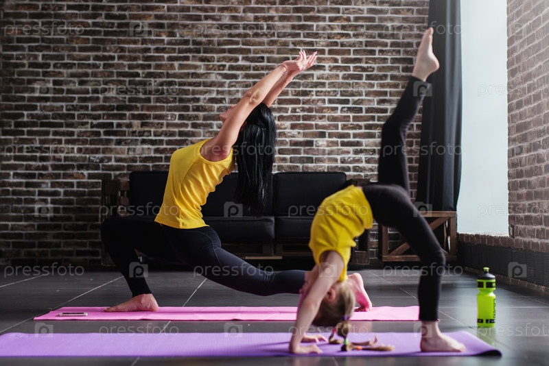 Мать и дочь тренируются дома