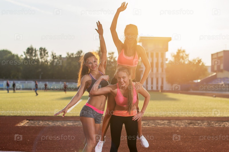 Девушки тренируются на стадионе