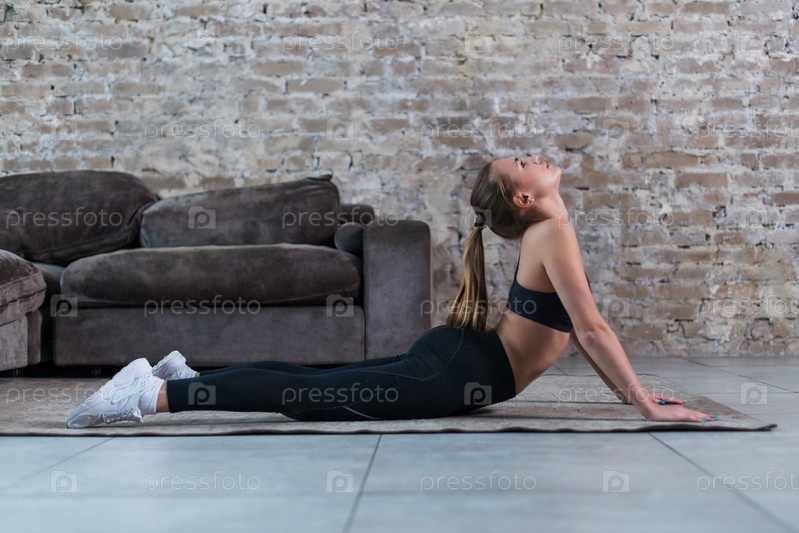 Девушка тренируется дома