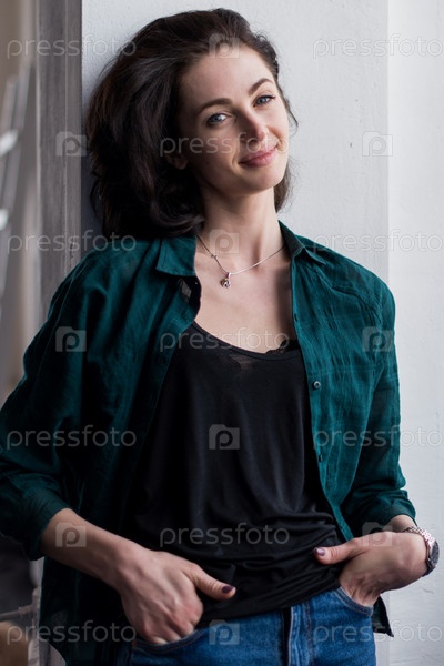 Женщина с темными волосами и голубыми глазами