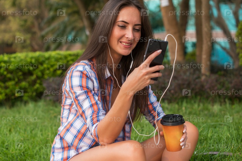 Привлекательная молодая женщина в наушниках