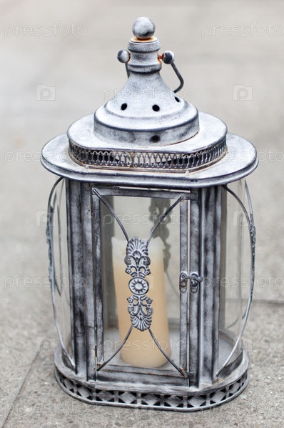 Прекрасно оформленный фонарь со свечой внутри