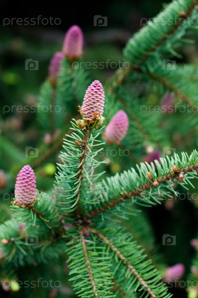 Цветущее хвойное дерево весной