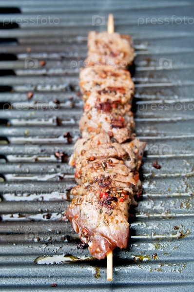 Шашлык из мяса с перцем на летнем барбекю
