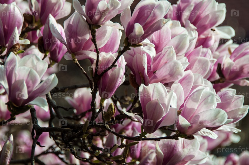 Розовая магнолия в цвету крупным планом