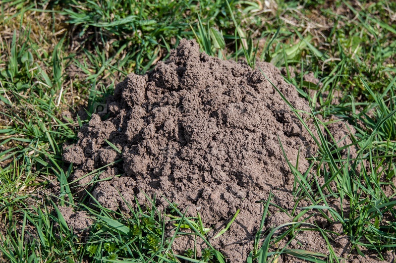 Свежая кротовина на поляне