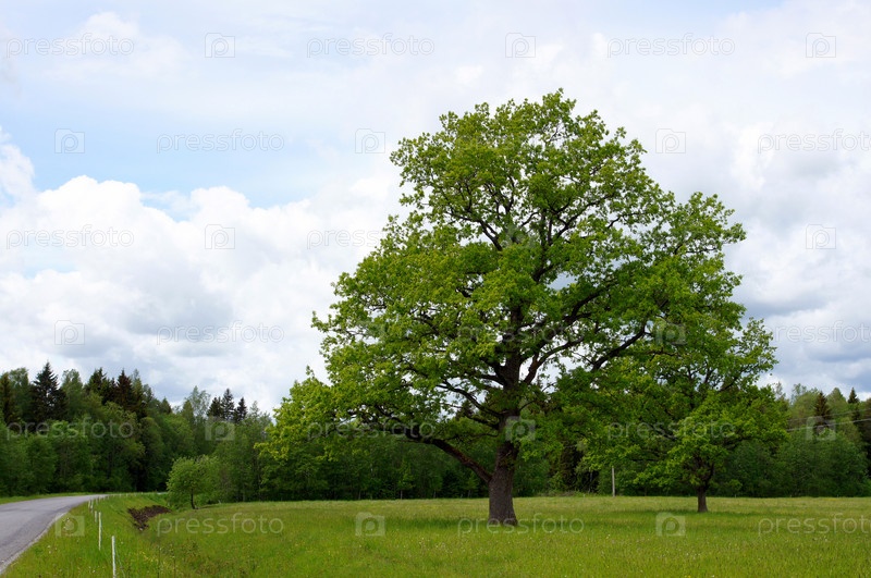Зеленый дуб посреди поля