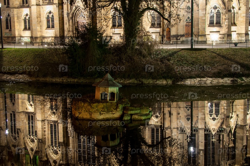 Отражение церкви в воде, Штутгарт, Германия