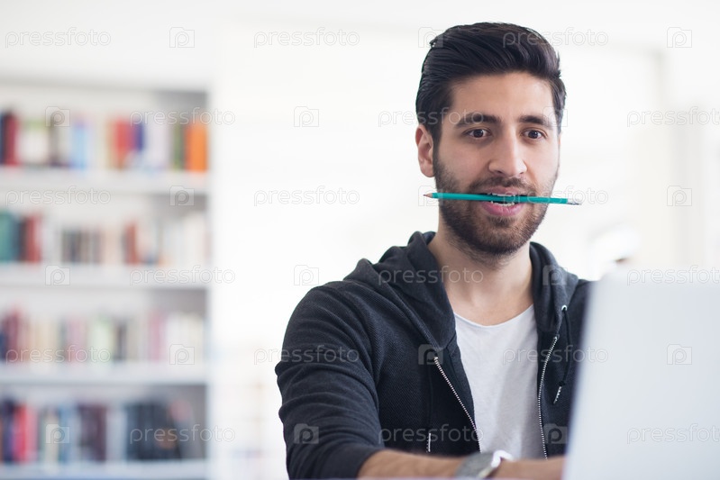 Студент в школьной библиотеке