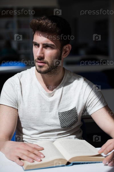Студент в школьной библиотеке