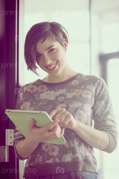 Деловая женщина работает на планшете
