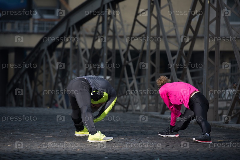 Пара разминается перед бегом