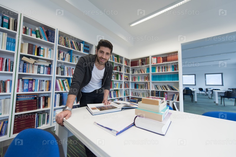 Студент в школьной библиотеке