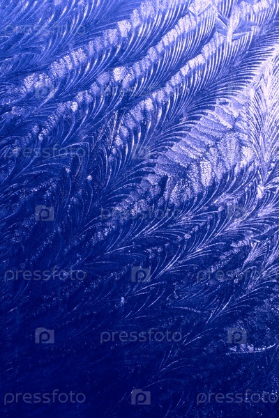 Синий шаблон с морозным рисунком на окне