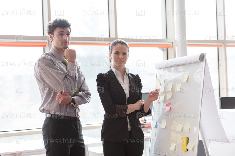 Молодая пара работает в офисе